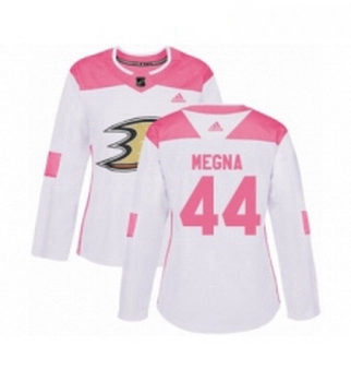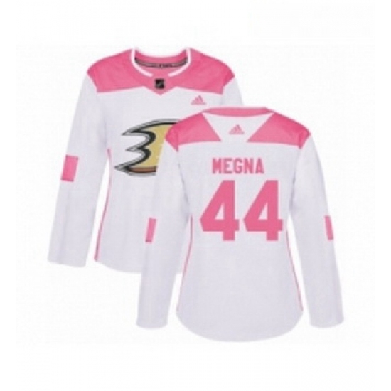 Womens Adidas Anaheim Ducks 44 Jaycob Megna Authentic White Pink Fashion NHL Jersey