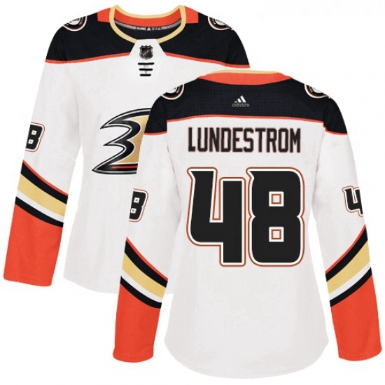 Home>NHL>Anaheim Ducks>Women>Womens Adidas Anaheim Ducks 48 Isac Lundestrom Authentic White Away NHL Jersey