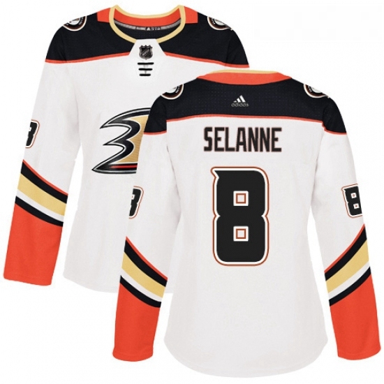 Home>NHL>Anaheim Ducks>Women>Womens Adidas Anaheim Ducks 8 Teemu Selanne Authentic White Away NHL Jersey