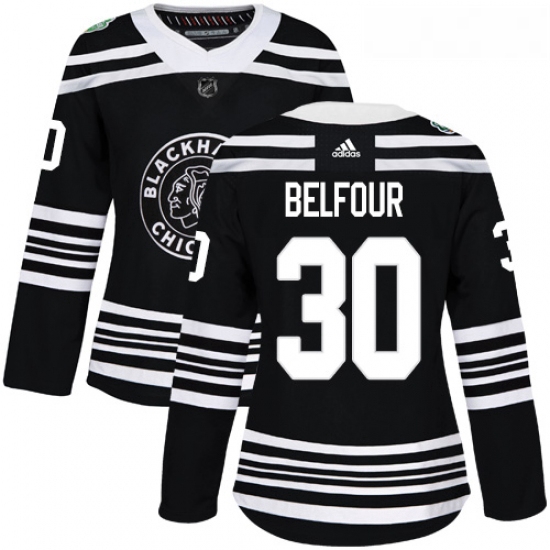 Womens Adidas Chicago Blackhawks 30 ED Belfour Authentic Black 2019 Winter Classic NHL Jersey
