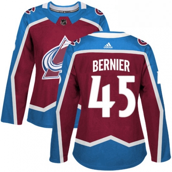 Home>NHL>Colorado Avalanche>Women>Womens Adidas Colorado Avalanche 45 Jonathan Bernier Authentic Burgundy Red Home NHL Jersey