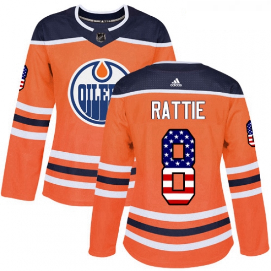Home>NHL>Edmonton Oilers>Women>Womens Adidas Edmonton Oilers 8 Ty Rattie Authentic Orange USA Flag Fashion NHL Jersey
