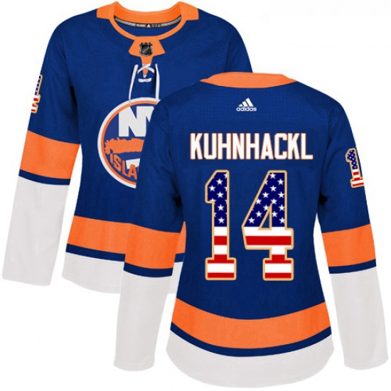 Home>NHL>New York Islanders>Women>Womens Adidas New York Islanders 14 Tom Kuhnhackl Authentic Royal Blue USA Flag Fashion NHL Jersey