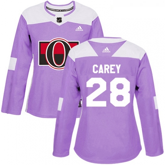 Womens Adidas Ottawa Senators 28 Paul Carey Authentic Purple Fights Cancer Practice NHL Jersey