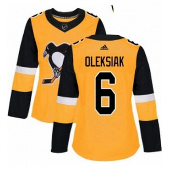 Home>NHL>Pittsburgh Penguins>Women>Womens Adidas Pittsburgh Penguins 6 Jamie Oleksiak Authentic Gold Alternate NHL Jerse