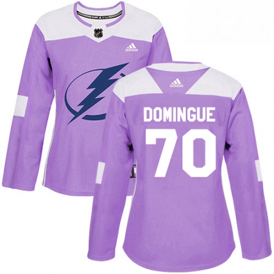 Home>NHL>Tampa Bay Lightning>Women>Womens Adidas Tampa Bay Lightning 70 Louis Domingue Authentic Purple Fights Cancer Practice NHL Jers