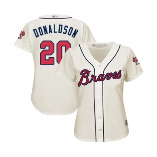 Womens Atlanta Braves 20 Josh Donaldson Replica Cream Alternate 2 Cool Base Baseball Jersey