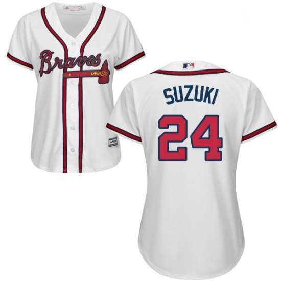 Home>MLB>Atlanta Braves>Women>Womens Majestic Atlanta Braves 24 Kurt Suzuki Replica White Home Cool Base MLB Jersey