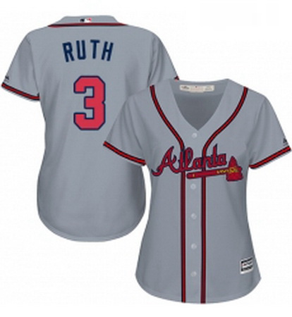 Womens Majestic Atlanta Braves 3 Babe Ruth Authentic Grey Road Cool Base MLB Jersey