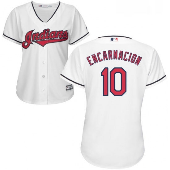 Home>MLB>Cleveland Indians>Women>Womens Majestic Cleveland Indians 10 Edwin Encarnacion Authentic White Home Cool Base MLB Jersey