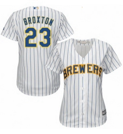 Womens Majestic Milwaukee Brewers 23 Keon Broxton Authentic White Home Cool Base MLB Jersey