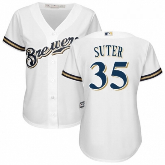 Womens Majestic Milwaukee Brewers 35 Brent Suter Authentic Navy Blue Alternate Cool Base MLB Jersey