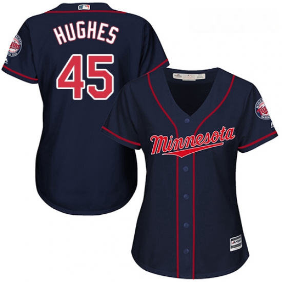 Home>MLB>Minnesota Twins>Women>Womens Majestic Minnesota Twins 45 Phil Hughes Authentic Navy Blue Alternate Road Cool Base MLB Jersey