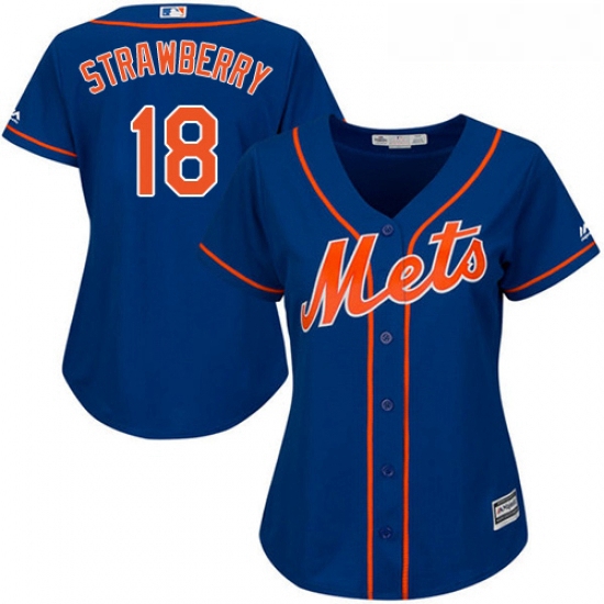 Womens Majestic New York Mets 18 Darryl Strawberry Authentic Royal Blue Alternate Home Cool Base MLB Jersey