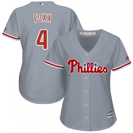 Home>MLB>Philadelphia Phillies>Women>Womens Majestic Philadelphia Phillies 4 Jimmy Foxx Replica Grey Road Cool Base MLB Jersey
