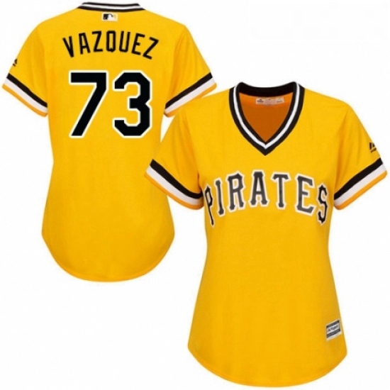 Womens Majestic Pittsburgh Pirates 73 Felipe Vazquez Replica Gold Alternate Cool Base MLB Jersey