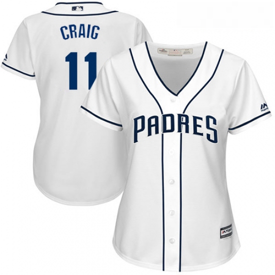 Home>MLB>San Diego Padres>Women>Womens Majestic San Diego Padres 11 Allen Craig Replica White Home Cool Base MLB Jersey
