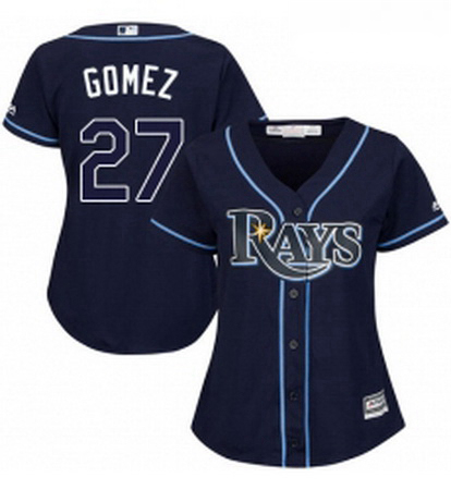 Womens Majestic Tampa Bay Rays 27 Carlos Gomez Authentic Navy Blue Alternate Cool Base MLB Jersey