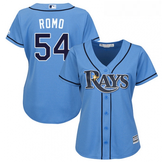 Home>MLB>Tampa Bay Rays>Women>Womens Majestic Tampa Bay Rays 54 Sergio Romo Authentic Light Blue Alternate 2 Cool Base MLB Jersey