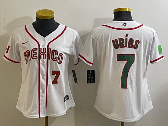 Women's Mexico Baseball #7 Julio Urias Number 2023 White World Classic Stitched Jersey1