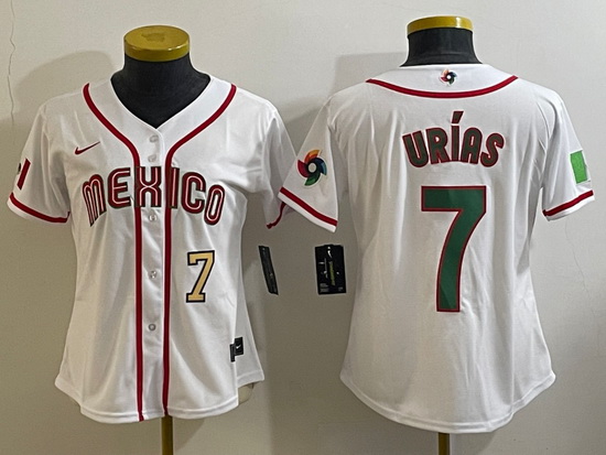 Women's Mexico Baseball #7 Julio Urias Number 2023 White World Classic Stitched Jersey3