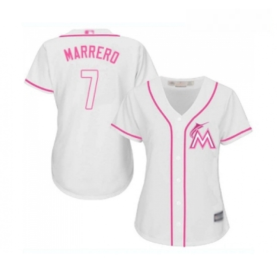 Home>MLB>Miami Marlins>Women>Womens Miami Marlins 7 Deven Marrero Replica White Fashion Cool Base Baseball Jersey