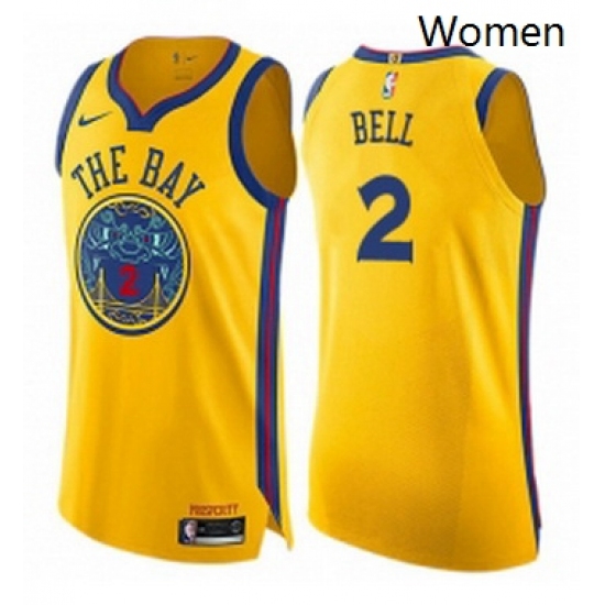 Home>NBA>Golden State Warriors>Women>Womens Nike Golden State Warriors 2 Jordan Bell Swingman Gold NBA Jersey City Edition