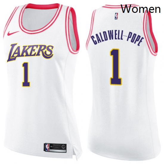 Home>NBA>Los Angeles Lakers>Women>Womens Nike Los Angeles Lakers 1 Kentavious Caldwell Pope Swingman WhitePink Fashion NBA Jersey
