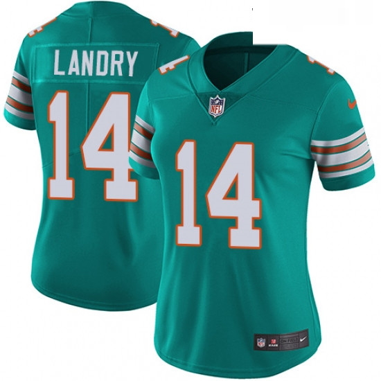 Home>NFL>Miami Dolphins>Women>Womens Nike Miami Dolphins 14 Jarvis Landry Aqua Green Alternate Vapor Untouchable Limited Player NFL Jersey