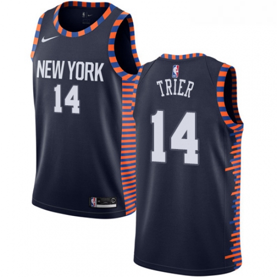 Womens Nike New York Knicks 14 Allonzo Trier Swingman Navy Blue NBA Jersey 2018 19 City Edition
