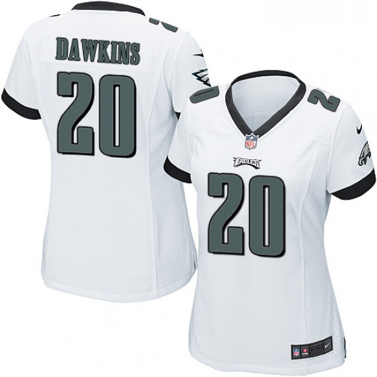 Home>NFL>Philadelphia Eagles>Women>Womens Nike Philadelphia Eagles 20 Brian Dawkins Game White NFL Jersey