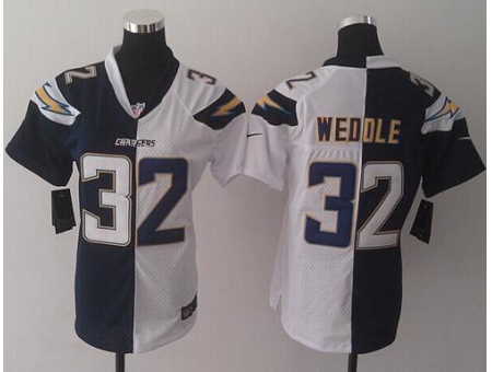Women's Nike San Diego Chargers #32 Eric Weddle Navy Blue White Stitched NFL Elite Split Jersey