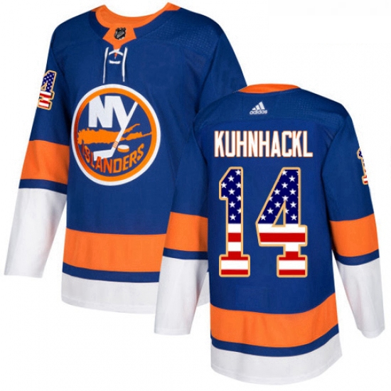 Home>NHL>New York Islanders>Youth>Youth Adidas New York Islanders 14 Tom Kuhnhackl Authentic Royal Blue USA Flag Fashion NHL Jersey