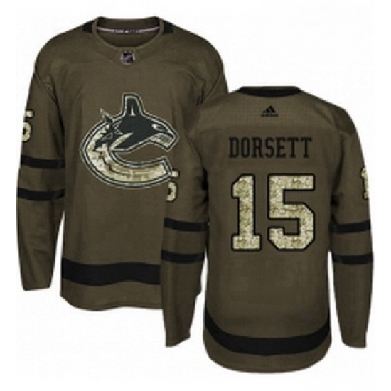 Home>NHL>Vancouver Canucks>Women>Youth Adidas Vancouver Canucks 15 Derek Dorsett Premier Green Salute to Service NHL Jersey