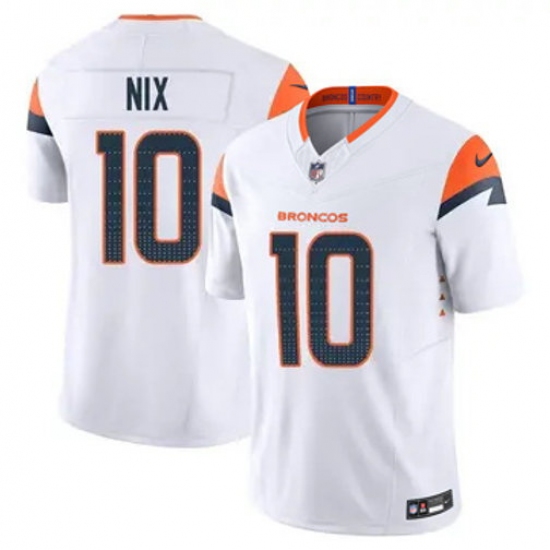 Youth Denver Broncos 10 Bo Nix White F U S E Vapor Limited Stitched Football Jersey