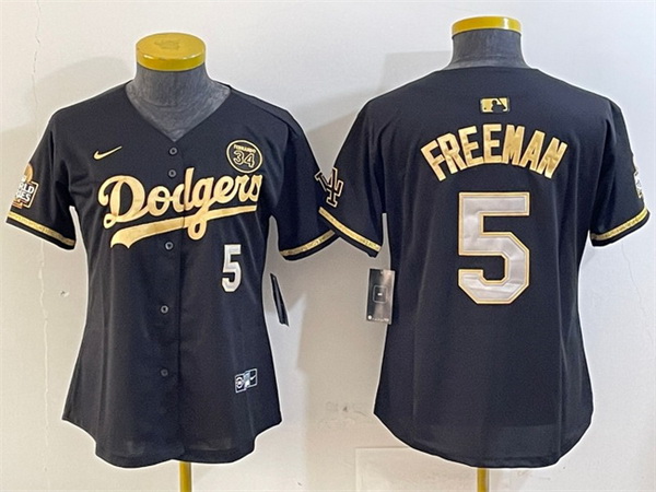 Home>MLB>Los Angeles Dodgers>Youth>Youth Los Angeles Dodgers 5 Freddie Freeman Black Gold 2024 World Series With Fernando Patch Vapor Limited Stitched Baseball Jersey