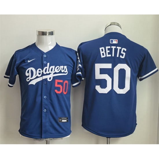 Youth Los Angeles Dodgers 50 Mookie Betts Blue Limited Stitched Baseball Jersey