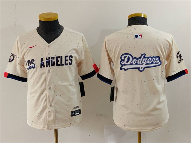 Youth Los Angeles Dodgers Team Big Logo Cream 2024 City Connect Limited Stitched Baseball Jersey 1