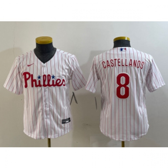 Youth MLB Phillies 8 Nick Castellanos White Nike Cool Base Jersey