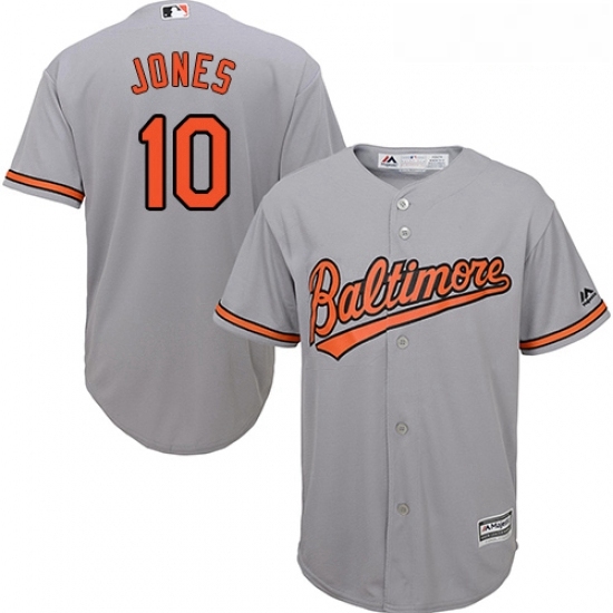 Home>MLB>Baltimore Orioles>Youth>Youth Majestic Baltimore Orioles 10 Adam Jones Authentic Grey Road Cool Base MLB Jersey