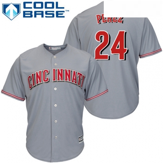 Youth Majestic Cincinnati Reds 24 Tony Perez Authentic Grey Road Cool Base MLB Jersey