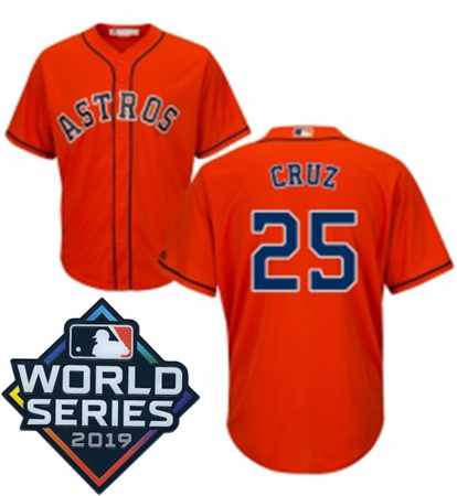 Youth Majestic Houston Astros 25 Jose Cruz Orange Alternate Cool Base Sitched 2019 World Series Patch Jersey