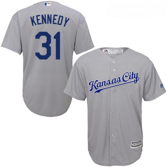 Youth Majestic Kansas City Royals 31 Ian Kennedy Replica Grey Road Cool Base MLB Jersey