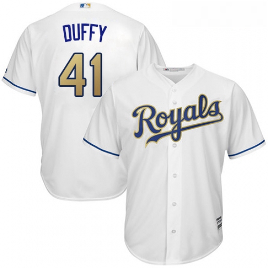 Home>MLB>Kansas City Royals>Youth>Youth Majestic Kansas City Royals 41 Danny Duffy Replica White Home Cool Base MLB Jersey