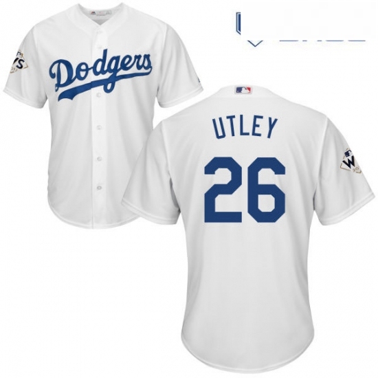 Home>MLB>Los Angeles Dodgers>Youth>Youth Majestic Los Angeles Dodgers 26 Chase Utley Replica White Home 2017 World Series Bound Cool Base MLB Jersey