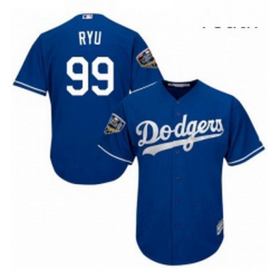 Youth Majestic Los Angeles Dodgers 99 Hyun Jin Ryu Authentic Royal Blue Alternate Cool Base 2018 World Series MLB Jersey