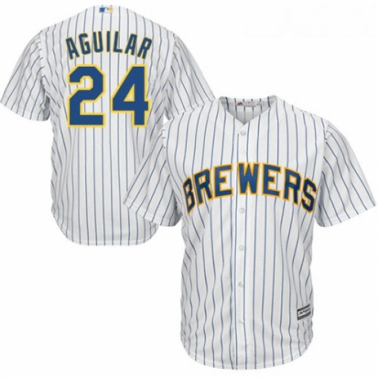 Youth Majestic Milwaukee Brewers 24 Jesus Aguilar Replica White Home Cool Base MLB Jersey