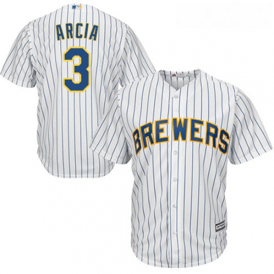 Home>MLB>Milwaukee Brewers>Youth>Youth Majestic Milwaukee Brewers 3 Orlando Arcia Authentic White Alternate Cool Base MLB Jersey