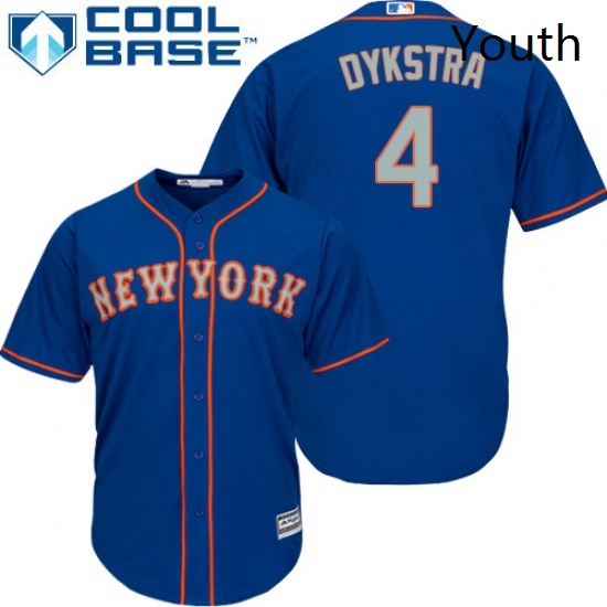 Youth Majestic New York Mets 4 Lenny Dykstra Replica Royal Blue Alternate Road Cool Base MLB Jersey