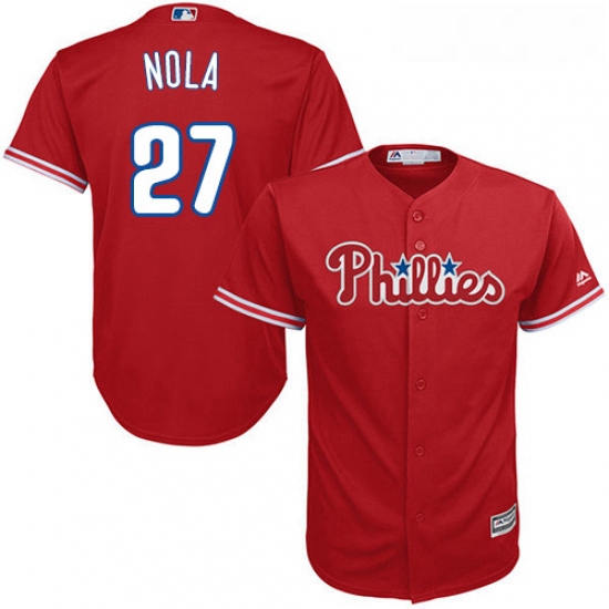 Home>MLB>Philadelphia Phillies>Youth>Youth Majestic Philadelphia Phillies 27 Aaron Nola Replica Red Alternate Cool Base MLB Jersey